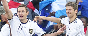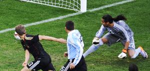 A Copa da África tem outros nomes, mais difíceis de falar e escrever: Schweinsteiger, Özil, Podolski, Müller e Klose. O quinteto destruiu a já combalida defesa argentina com três gols na etapa final. Aos 22, a Alemanha 2010 mostrou a sua jogada típica: triangulação perfeita, Müller serviu Podolski na área, que rolou para Klose: 2 a 0. Logo depois, aos 29 minutos, Schweinsteiger saiu da linha lateral e aterrissou na área do oponente, após driblar três impotentes argentinos. O zagueiro Friedrich recebeu o presente e marcou o 3 a 0.