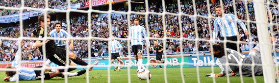 O roteiro de Green Point começava a ser escrito como uma cópia fiel da partida entre alemães e ingleses - só que sem erros de arbitragem. Assim como a Inglaterra, os argentinos até deram esperança aos seus torcedores no segundo tempo. No entanto, o contra-ataque alemão funcionou de novo. Azar de Maradona, que teve de assistir ao massacre germânico sem poder fazer nada. Sua Copa foi a de 1986. Essa já passou.